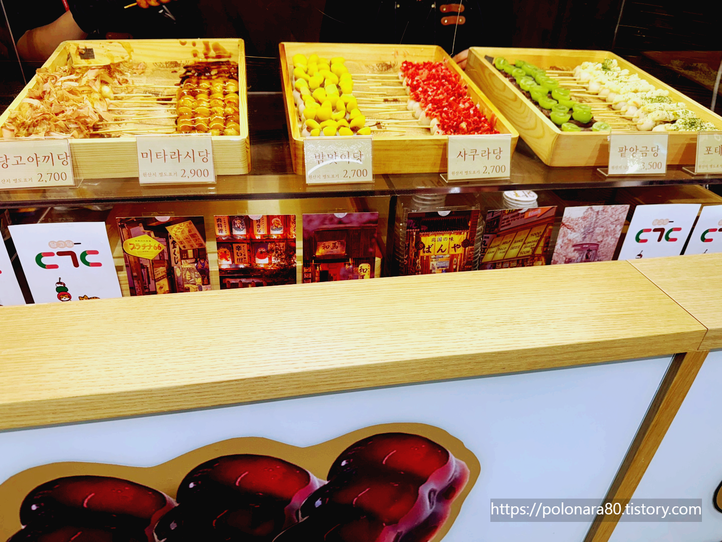 당고야끼당(2700원) 1개,미타라시당(2900원) 1개,사쿠라당(2700원) 1개,팥앙금당(3500원) 1개
